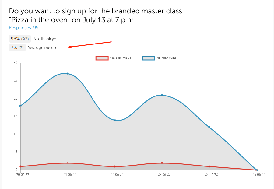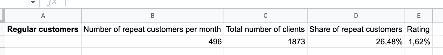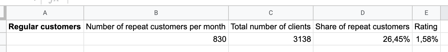 This question helps us bring the customer back to the restaurant. The client will come with children, which means he will bring us additional revenue on a weekday. These surveys helped especially well at the second restaurant, where we increased the number of repeat customers (those customers who made 2 or more orders per month).